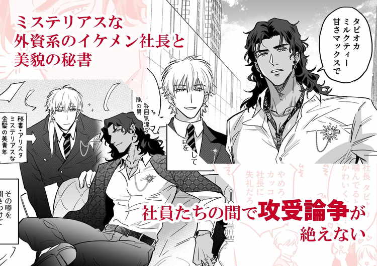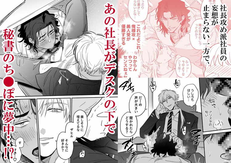 圧倒的なカリスマ性を持つイケメン社長・ザヒルとミステリアスな容姿端麗秘書・アリスタ。社内では二人の攻受関係で話題は持ち切り。そして今回、ついに事実が判明してしまう。アリスタのデスクの下に座り込み、股間に顔を埋めて夢中でイチモツを頬張るのはザヒル社長。セクシーな雄要素たっぷりの褐色イケメンが秘書に攻められてあられもない姿をさらしていたのだ。ムチプリのマッチョな肉体を震わせながら潮を吹かされる社長のエロい姿は必見です。