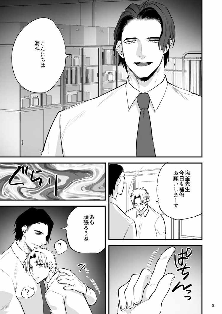 放課後、個別授業を受けるために塩釜先生のもとを訪れた不良生徒・海斗。勉強する気で来たのに先生が指を鳴らすと催眠状態に。先生に乳首を弄られ続けているのに本人は勉強しているつもり。かなり前から実行されていたようですでに快楽によって開発されていた海斗の身体。若さが滲み出る男子生徒の綺麗な肉体を徹底的に弄ぶ悪い教師のBL漫画。