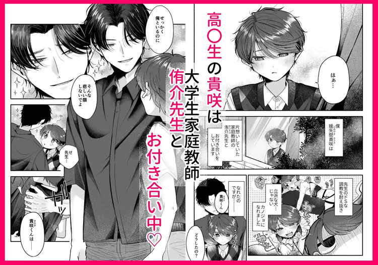 大学生家庭教師・侑介と生徒である男子校生・貴咲のイチャイチャ甘ラブBL漫画。大好きな先生の彼女(男)になれた教え子の貴咲だが、エッチばかりで恋人らしいことを何一つしてくれない侑介に不満と不安でいっぱいに。すれ違い続けた二人の関係は、侑介が家庭教師を辞めたことで終わりを迎える。しかし、侑介に開発された身体は普通のオナニーでは満足できず再び彼氏との再会を求めるように。真っすぐで健気な貴咲を愛情たっぷりの意地悪攻めでめいっぱい気持ち良くする侑介のテクニックは必見。乳首を弄ばれてウブなペニスはビンビンに。アナルセックスで中出しされる喜びに溺れる貴咲のエッチな姿も見どころです。素敵な歳の差カップルBLをお楽しみください。