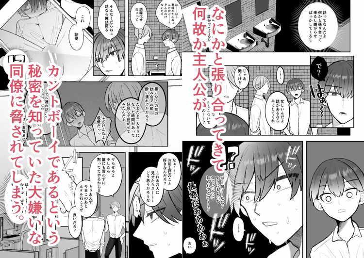 優しくてイケメンの主任に恋をする主人公。カントボーイである彼はついに告白する事を決意する。しかし、大嫌いな同僚にカントボーイであることがバレていて、主任にもその秘密が知られていた。部下のクリトリスを弄ぶ主任、一心不乱にオナニーしてしまう主人公、嫌いな同僚からの乳首責め、大好きな上司とのキスハメなど、読みどころたっぷりのオフィスラブBL漫画。
