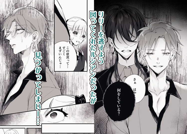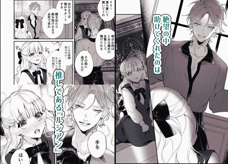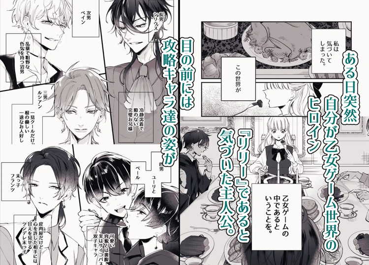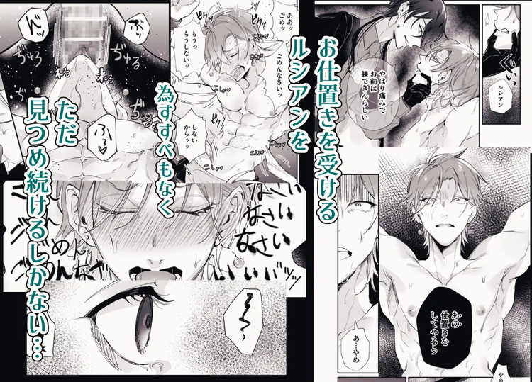 乙女ゲームのヒロイン・リリーに転生していた主人公。しかし、残念なことにバッドエンドルートに突入しているということに気づく。儀式の生贄となり命を落とす悲惨な最期がすぐそこまで迫っていた。しかし、そんな状況の中、助けに現れたのは推しであるルシアンだった。六人兄弟の三男でクールだけど根が優しくて一途なイケメン。このまま二人で逃亡できるかもしれない。そんな希望を抱いたのも束の間、長男・シリウスが背後からルシウスを捕らえる。危ない兄弟たちから酷い仕打ちを受けるであろうルシアンを心配する主人公。しかし、そのお仕置き現場で目撃したのは兄弟たちによる快楽攻めだった。フェラチオを強要され、全身を弄ばれ、アナルを攻められる推し。乙女ゲームの兄弟たちが快楽で絆を深めている光景を描いたBL漫画です。