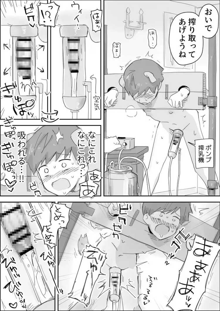 男性器を弄ばれ、肛門を広げて辱められる。本当ならば苦痛のはずが沸き上がる興奮と快楽。マゾ気質のショタが大人たちから調教されてマゾペットへと堕ちてゆくBL漫画。SMプレイや集団によるアナルセックス、アナルビーズやローターで容赦なく責められる肛門。媚薬を飲んでからの行為はさらにエスカレートし、特大ディルドやバイブなど、さまざまな器具によって性欲処理アナルに仕上げられてしまう少年。搾乳機や搾精機で搾り取られる表情はかなりエッチ。これはぶっ飛んでしまいますね。