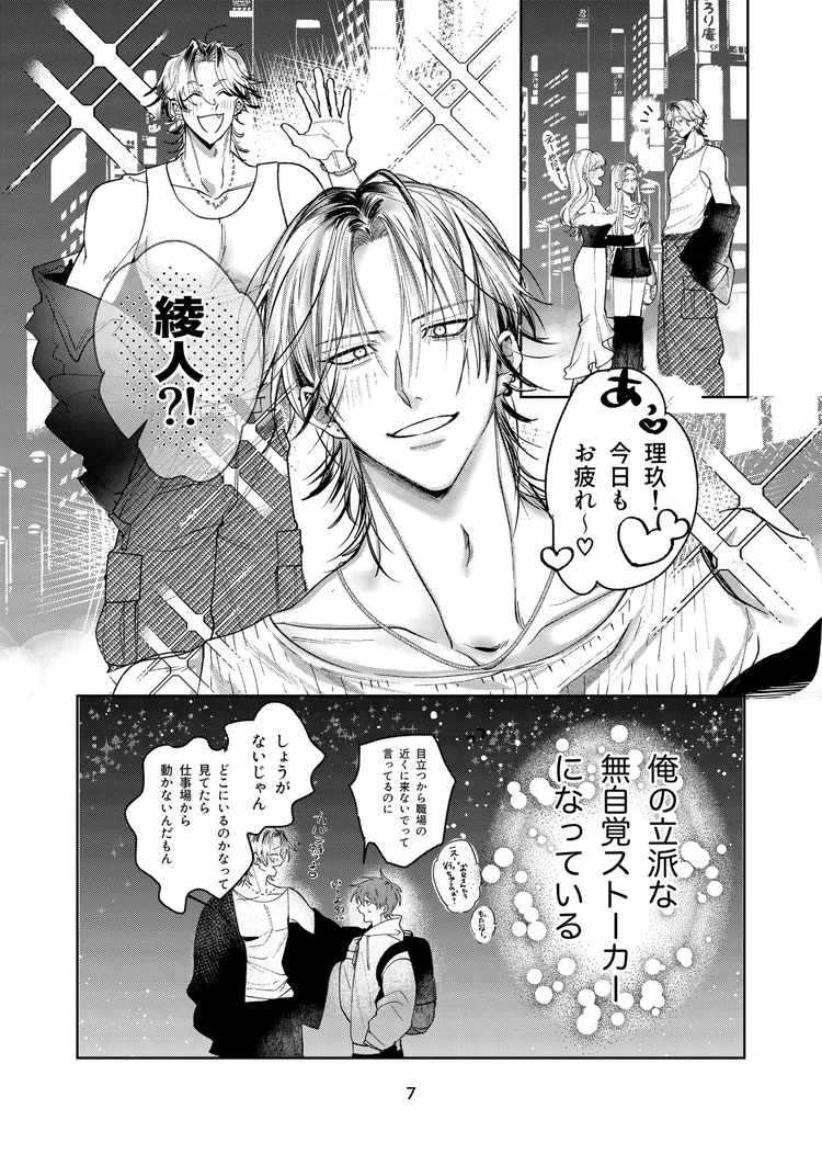 頼まれたら断れないお人好しで流され体質の木村理玖は、長身イケメン東雲綾人からストーカーされる日々。住む場所を失った綾人を自宅に泊めたことがきっかけで同棲することになり、ついでにアナルを開発されてしまった理玖。性格上断れないままずるずると肉体関係を続けているうちに綾人の想いがどんどん重くなってゆくことに。そして、今では優しく気持ちよくしてくれる綾人に対して特別な想いを抱きつつある理玖だった。愛情たっぷりの綾人の性欲が外でも中でも理玖に向けられるラブゲイセックスが満載。野外あり、攻めフェラあり、ローションガーゼから中出しまで、あらゆるプレイで愛し合う男同士のカップルBL漫画。