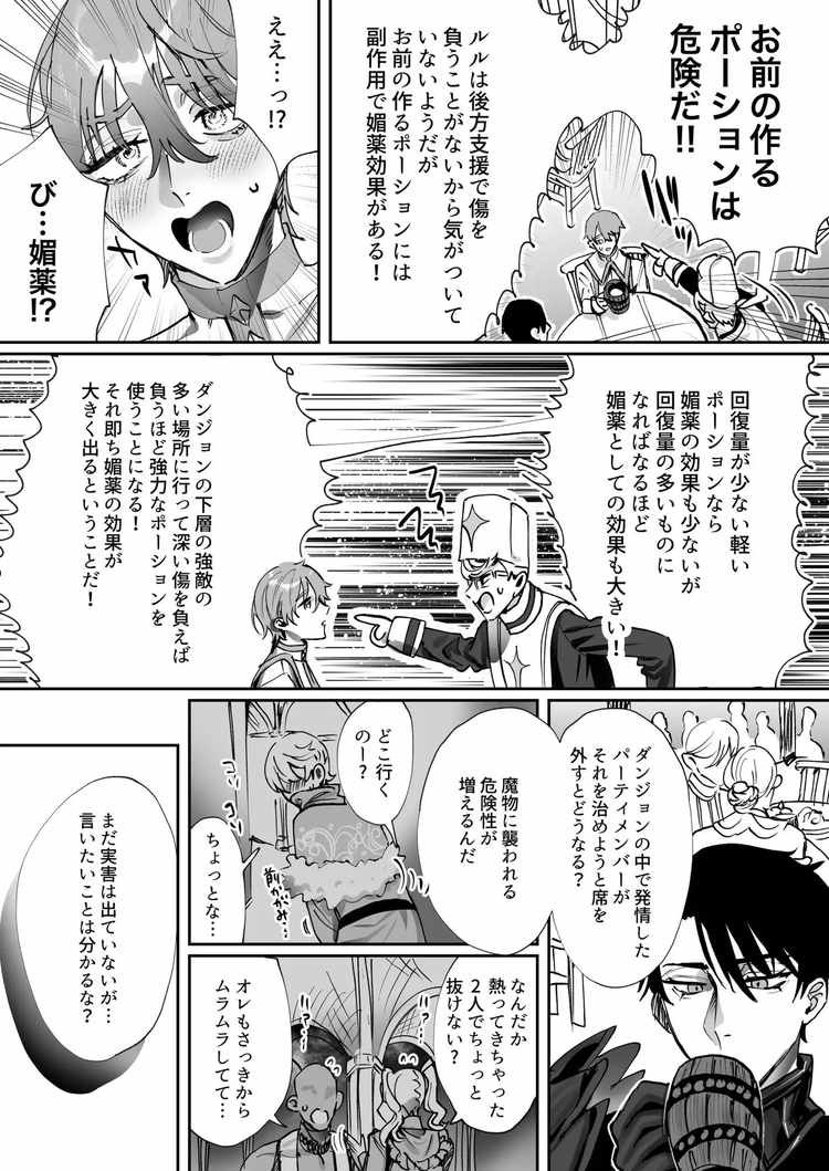 リーダーとヒーラーのBL漫画 なんでパーティ追放したかと聞かれてもお前(ヒーラー)の作る回復薬が全部媚薬だからなんだが?