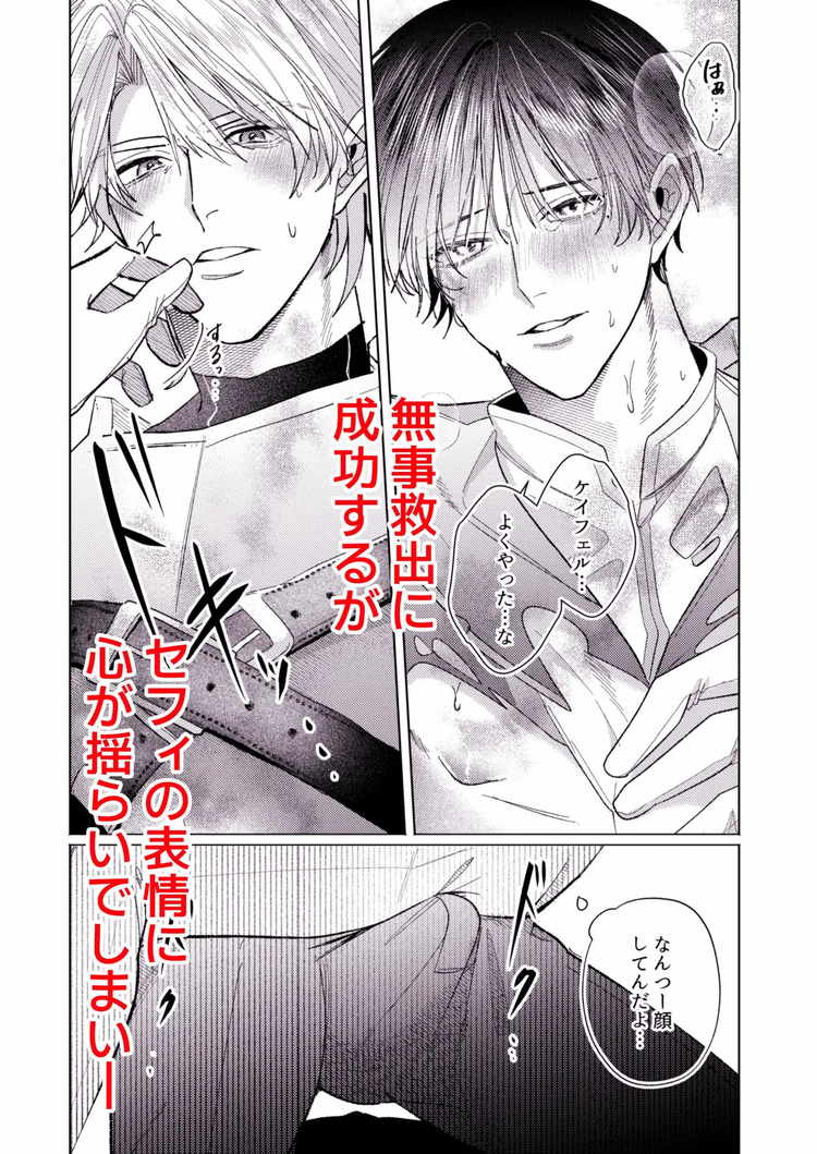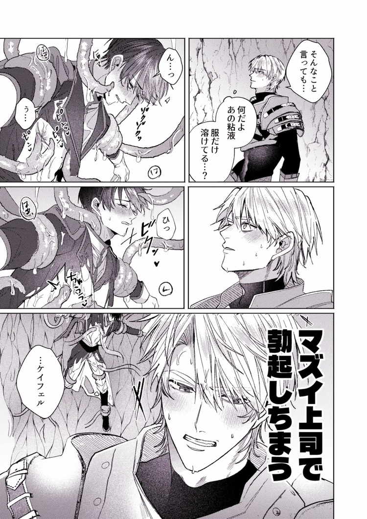 美人に弱い騎士・ケイフェル・オルゼンが美人な上司(隊長)のセフィ・リヒテンハイムとともにエロトラップダンジョンの巨大触手に襲われていた。媚薬が効き始めた二人の肉体はムラムラ発情。しかし、何とかその場を切り抜けた二人だったが問題はそこからだった。溜まりに溜まったケイフェルの性欲が逞しい男根をギンギンにそそり立たせる。美人上司セフィは覚悟を決めてアナルを差し出すファンタジーBL漫画。