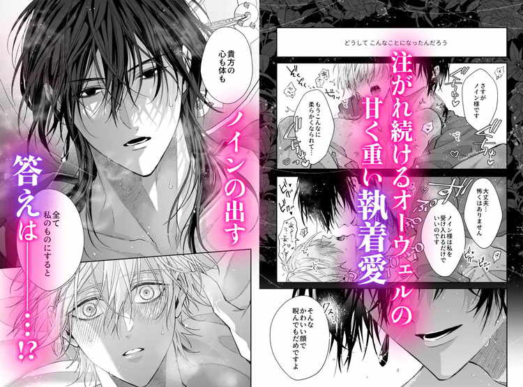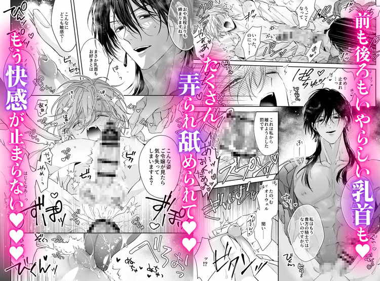 絶対に破滅エンドは避けたい。ゲームの世界に転生し、悪役令息・ノインとして生きることになった主人公。婚約破棄がきっかけで断罪される結末を避けるために一人で田舎に引っ越す計画を立てる。しかし、その前にノインに仕える忠実な騎士・オーウェルを解雇する必要があった。ところが、ここから話は急展開。愛が重すぎるオーウェルに無理矢理媚薬を使われたあげく前も後ろも乳首も奪われてしまう結果に。美しく気品のある令息と騎士が最終的に快楽を求めあう主従ファンタジーBL漫画です。めちゃくちゃ忠実で過保護だったオーウェルの大胆で強引な攻めが見どころ。