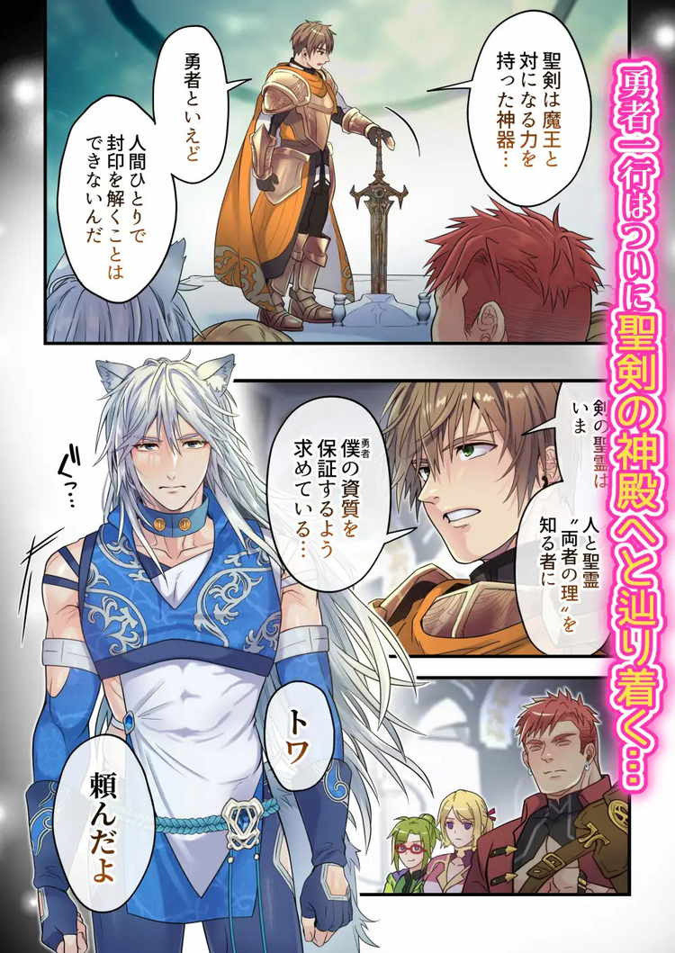 ふはい鍋/宮浜りょう作品。人気のファンタジーBL「生イキ狼シリーズ」の続編。今回も白狼族のトワがよわよわなアナルで健気に受け止める展開に。勇者アルトとともに魔王討伐の旅を続けてきたパーティーが聖剣の眠る神殿に到着。そこでトワの持つ能力「聖霊と対話する力」を駆使して守護者とアルトを結ぶ儀式が始まる。しかし、この場所も魔王の手によって穢されていた。トワの肉体に絡みつくのはスライムと化した守護者。勇者に忠誠を尽くすトワはそれを拒むことはせず、自らの肉体を使って聖霊を救うことを試みる。容赦なくアナルに侵入してくるスライムにトワはどこまで抗えるのか。ケモミミ獣人の戦士が屈強な肉体を弄ばれるボテ腹まで披露する人気作品。